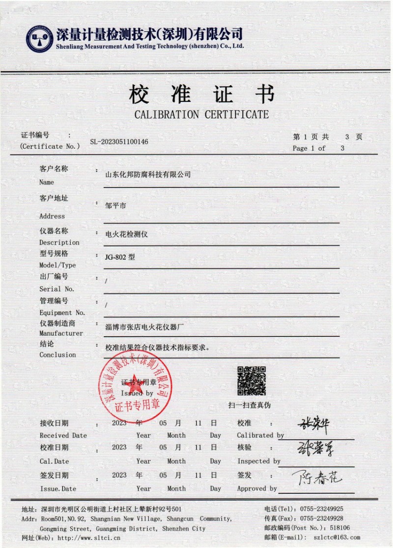 檢測(cè)儀器報(bào)告證書:電火花檢測(cè)儀jg-802
