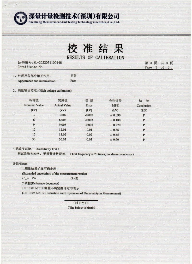 檢測儀器報(bào)告證書:電火花檢測儀jg-802