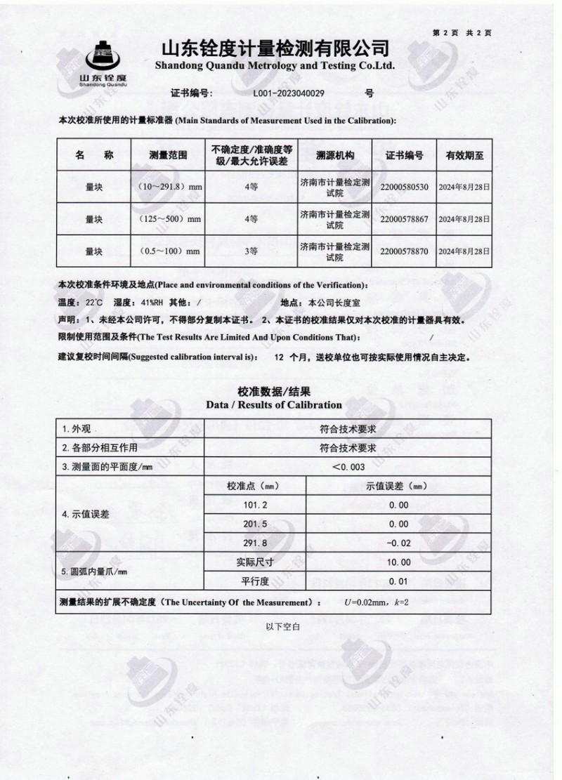 檢測儀器報告證書:鋼卷尺長度堅定報告